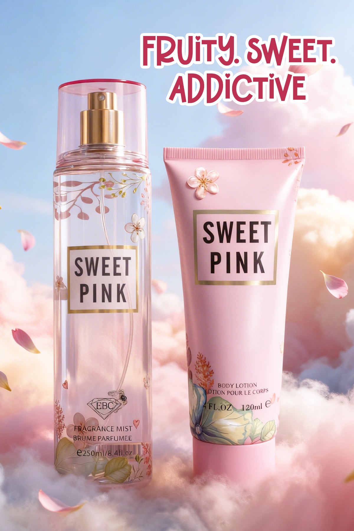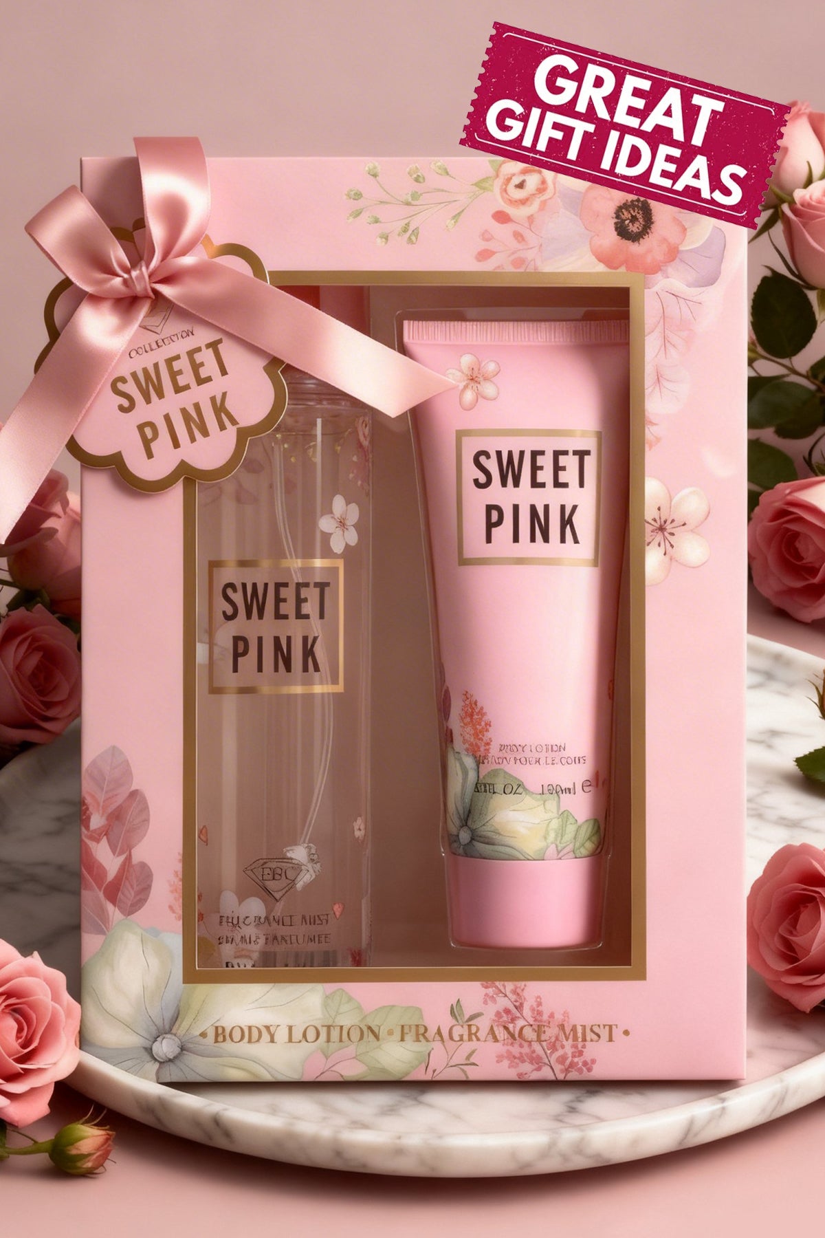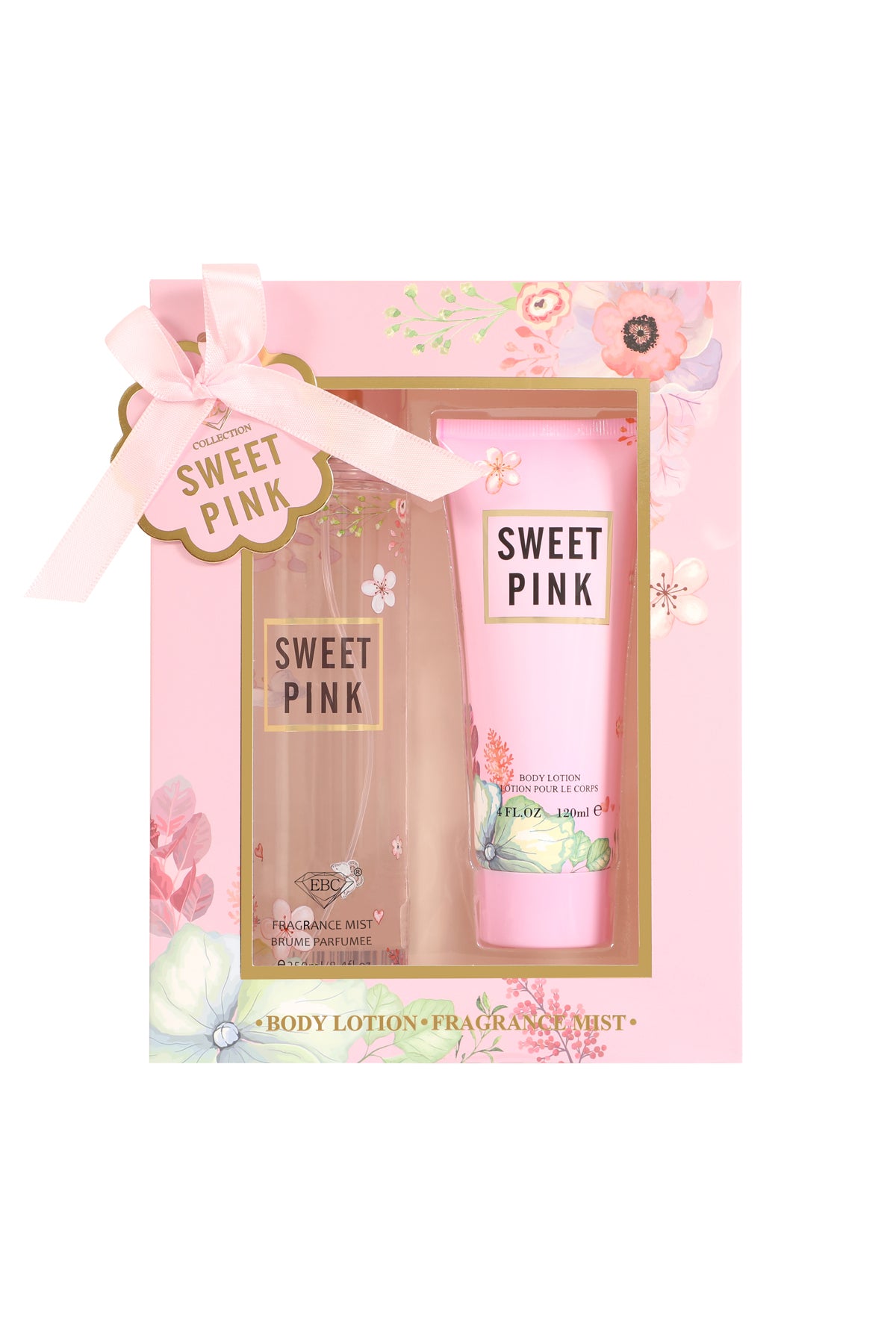 SWEET PINK FRAGRANCE MIST & BODY LOTION GIFT SET FOR WOMEN – 2 PIECE SET (250ML FRAGRANCE MIST + 120ML BODY LOTION)