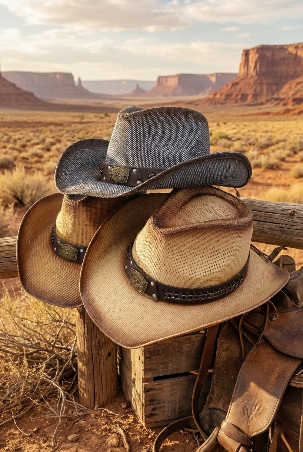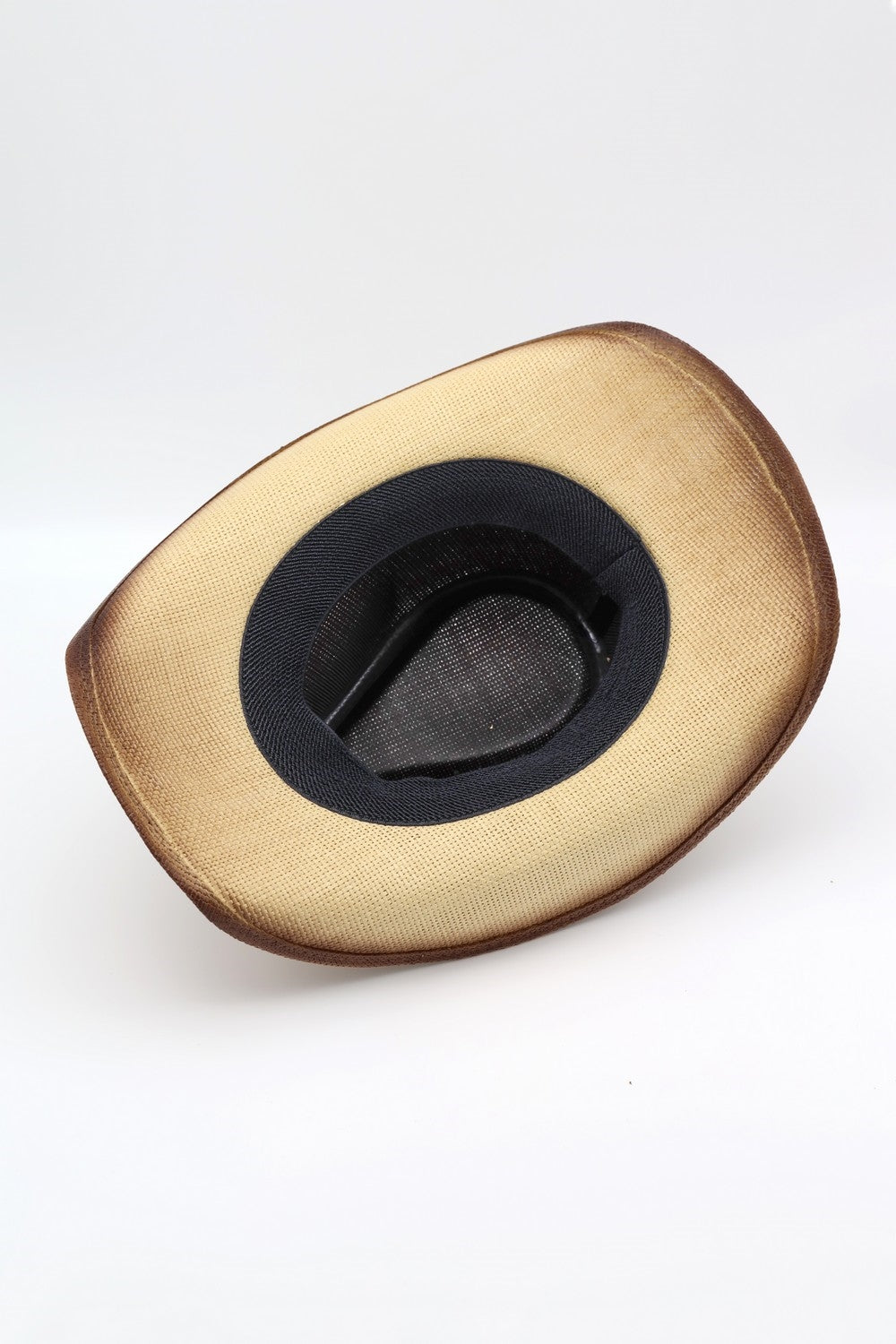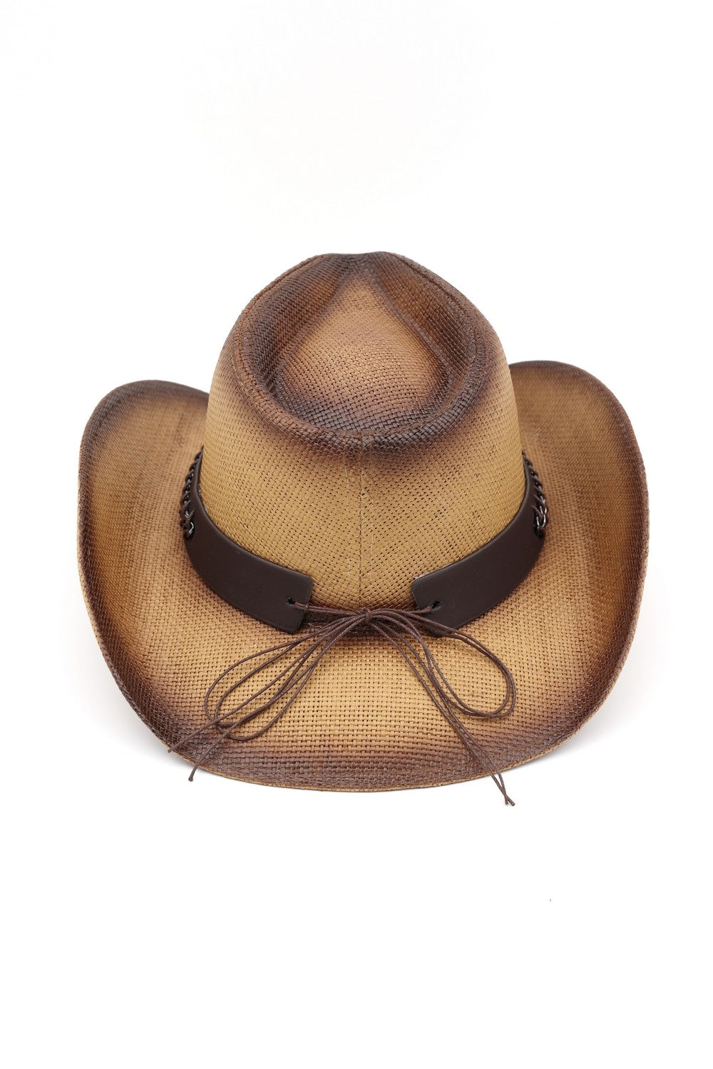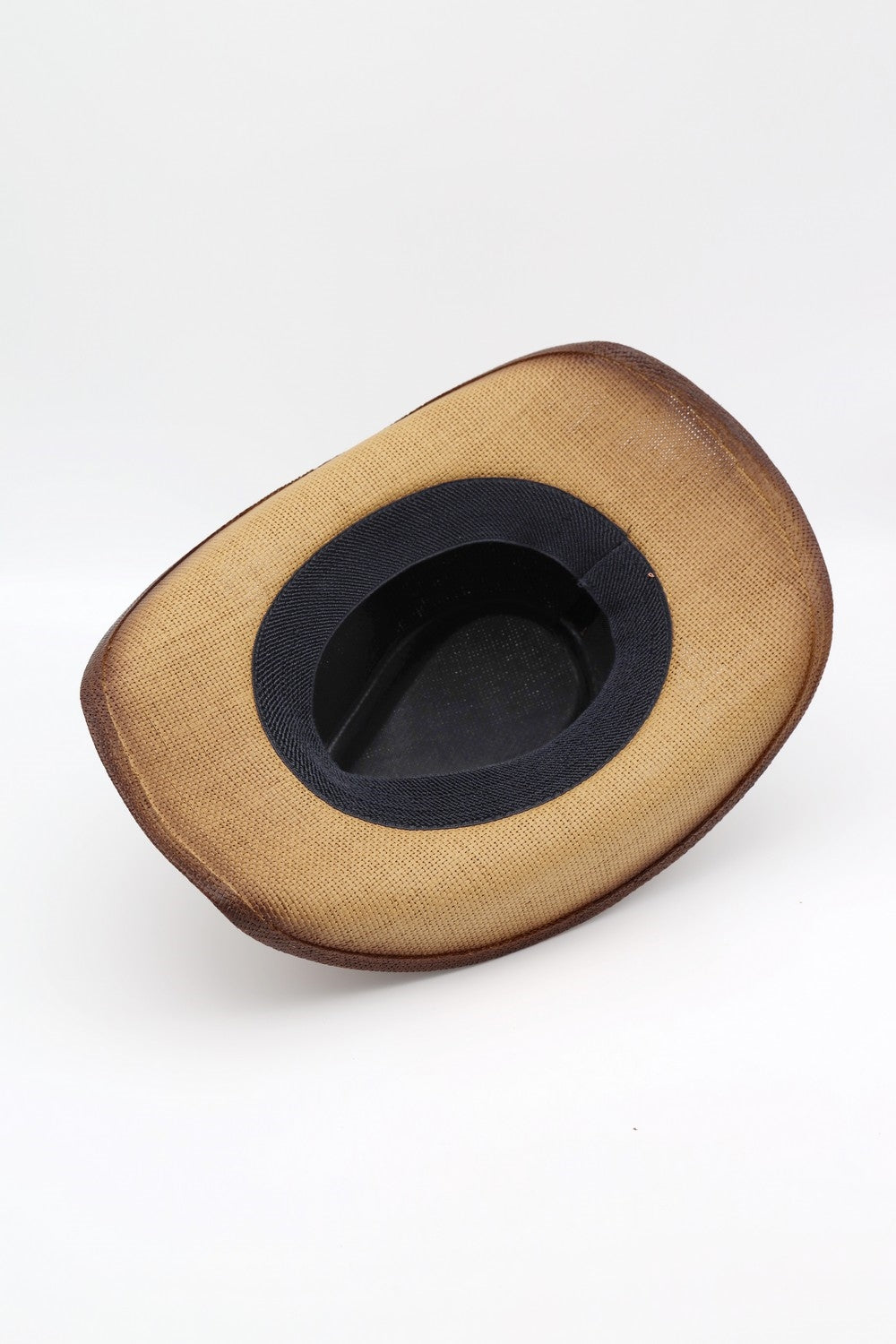 RUSTIC COWBOY HAT WITH CHAIN AND CONCHO DETAIL FAUX LEATHER BAND