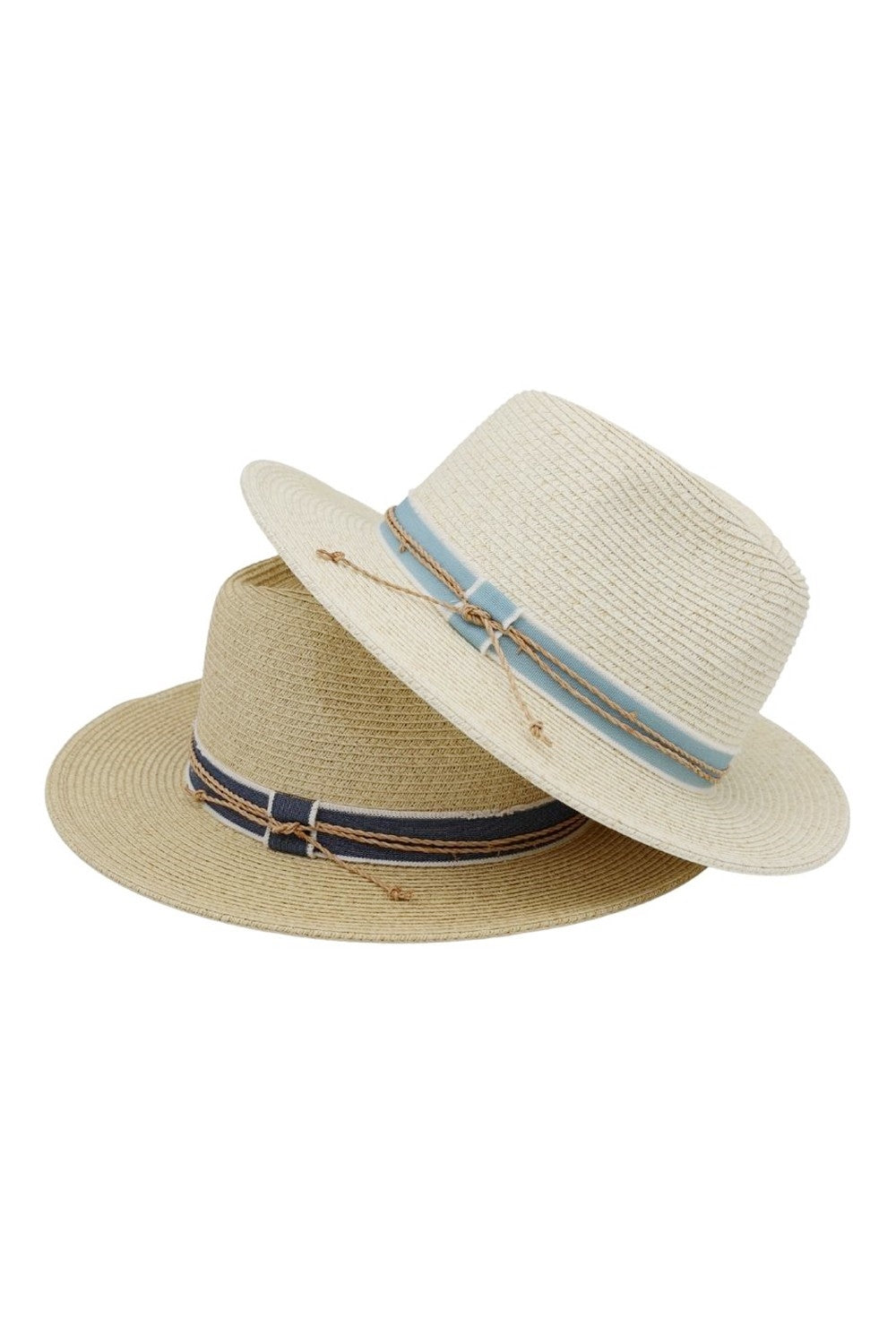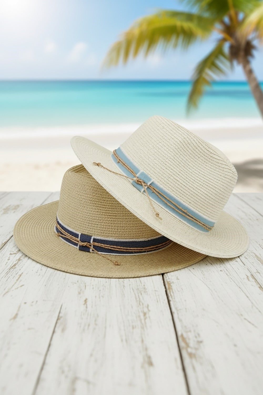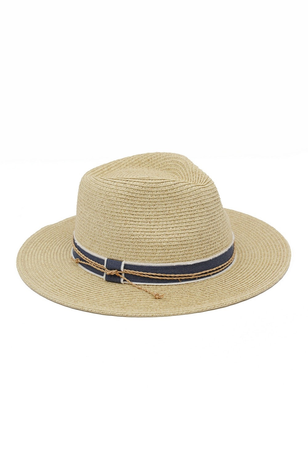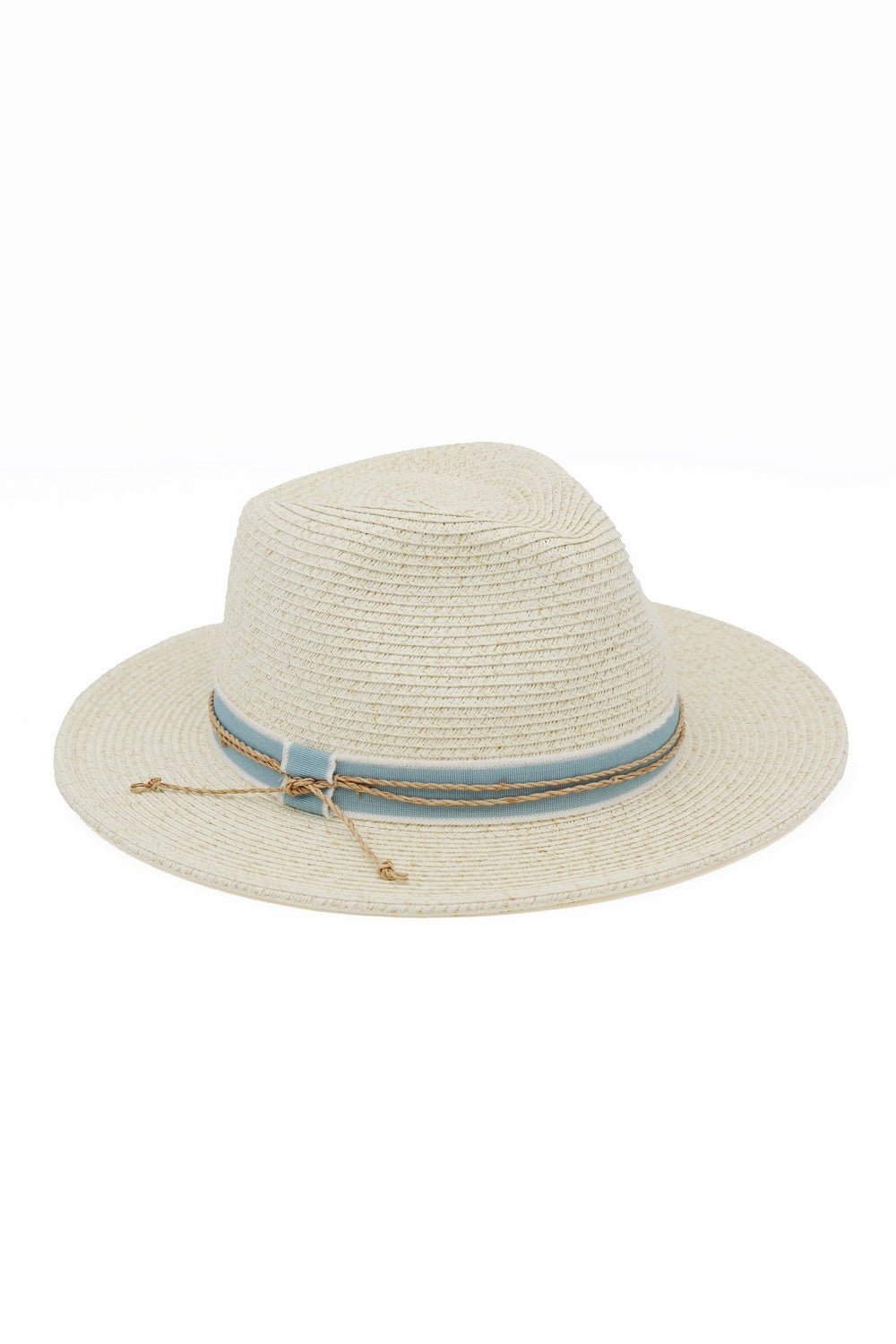 STRAW FEDORA HAT WITH CONTRAST RIBBON AND BRAIDED CORD DETAIL