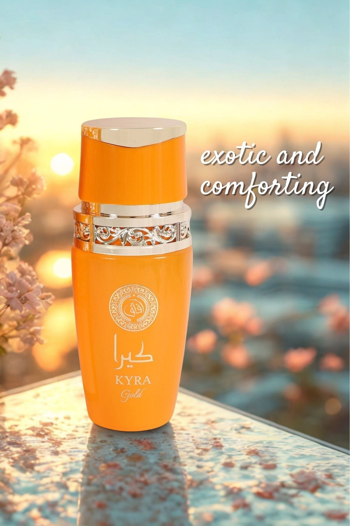 Discover the luxurious essence of KYRA Gold Spray Perfume, an eau de parfum crafted for women who desire sophistication and charm. This 100ml fragrance delivers a rich, radiant scent that makes a lasting impact, perfect for elevating your everyday style or accentuating special moments. With its elegant blend, KYRA Gold ensures you leave a memorable impression of confidence and grace wherever you go. Indulge in golden elegance and transform your fragrance experience.