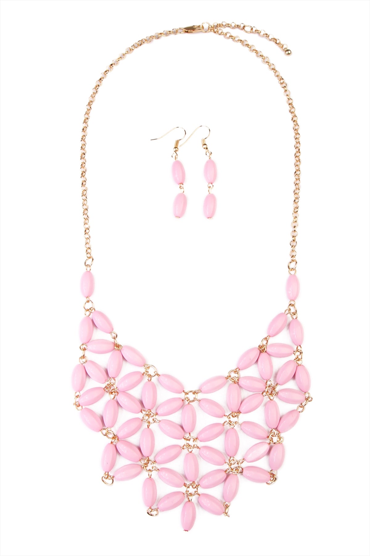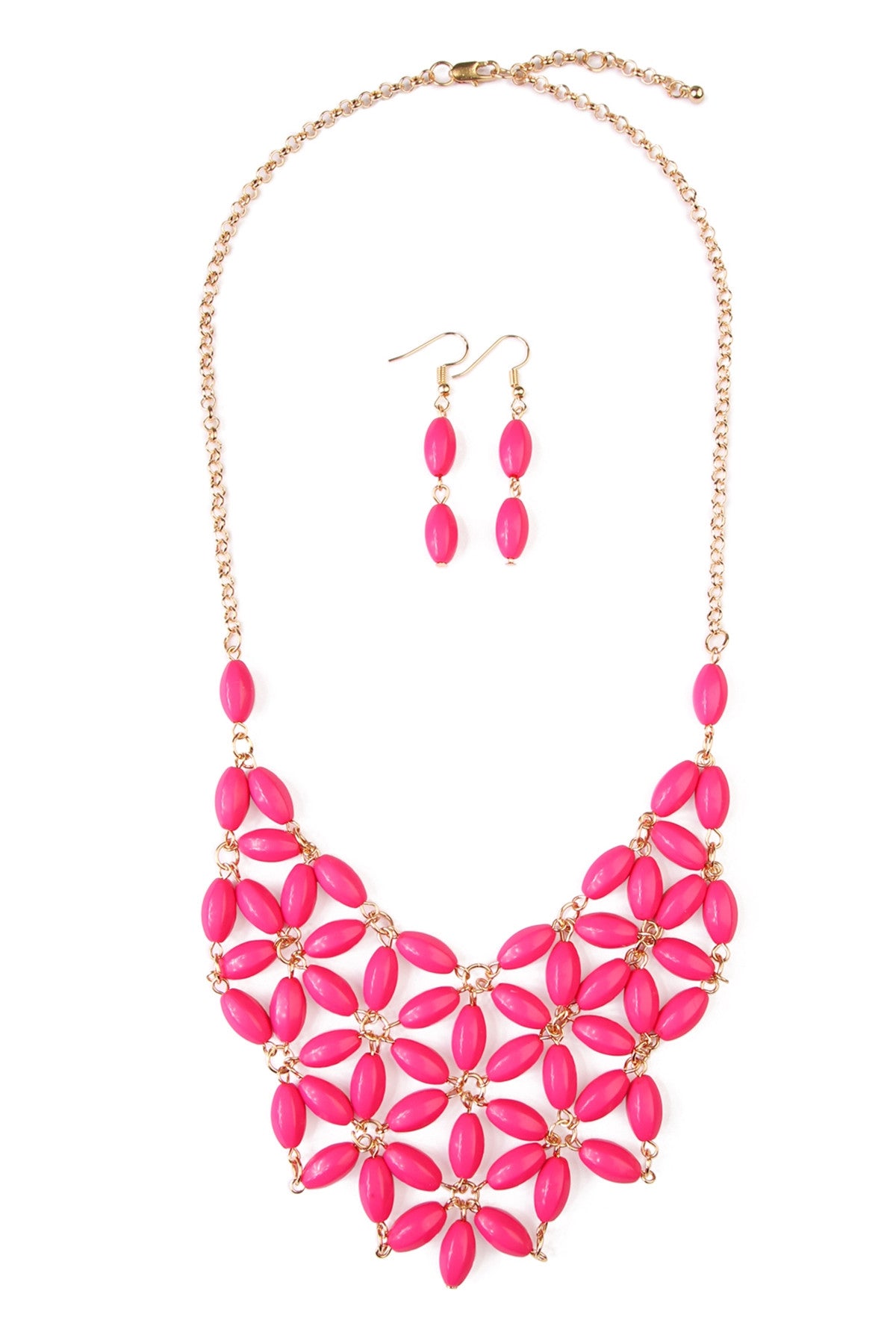 Material/s: Base Metal, Acrylic Size: 1.5" Extender Length, 19" Length, 3" Drop Length, Earrings: 1.5" Length