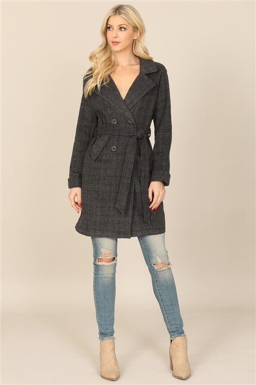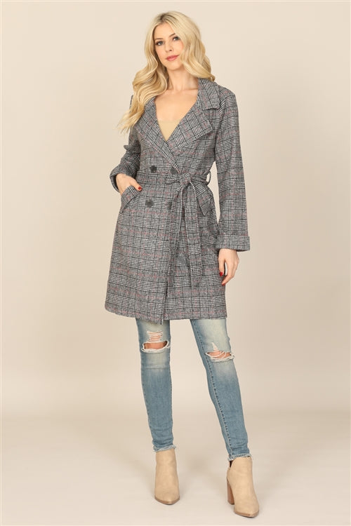 J5284-SEAMLESS PLAID WAIST TIE WRAP COAT JACKET 2-2-2
