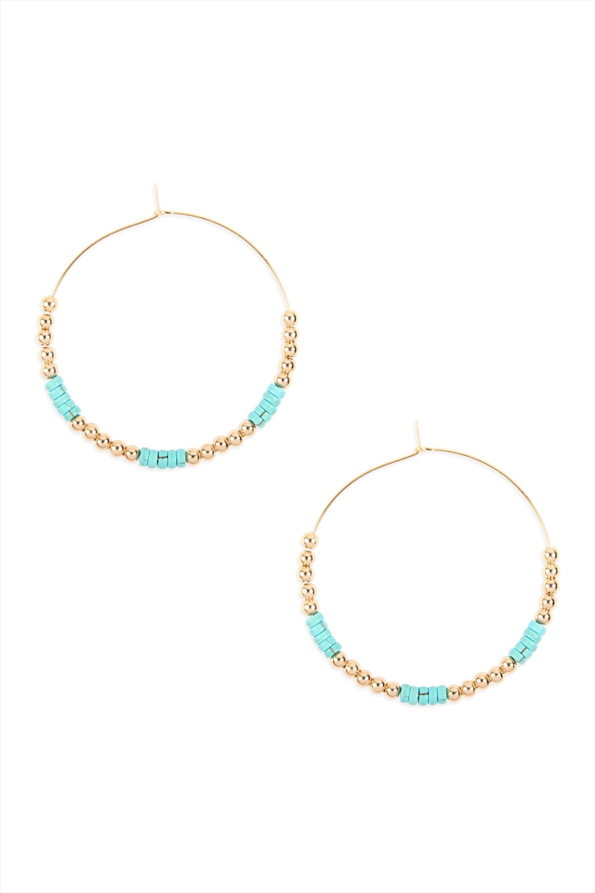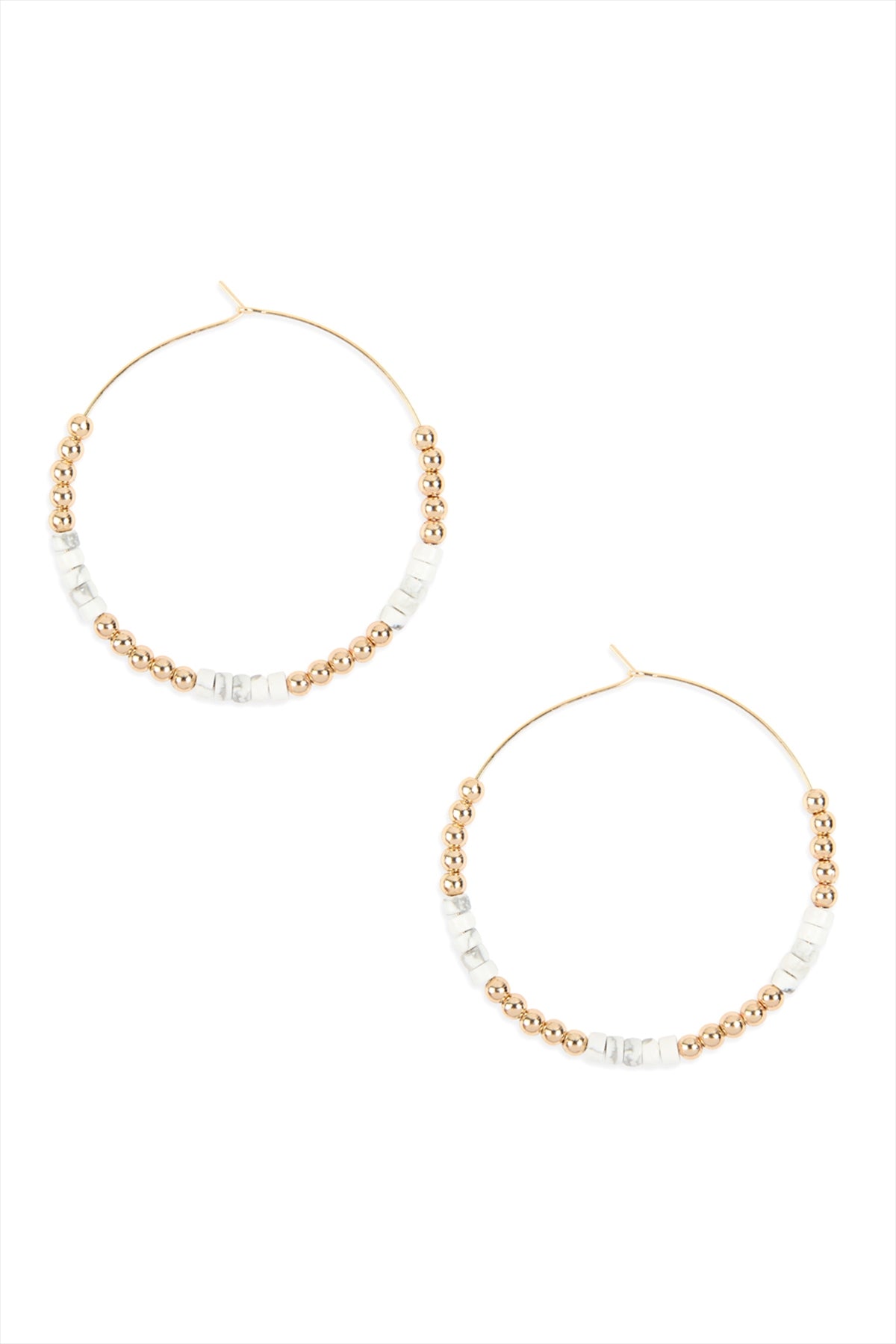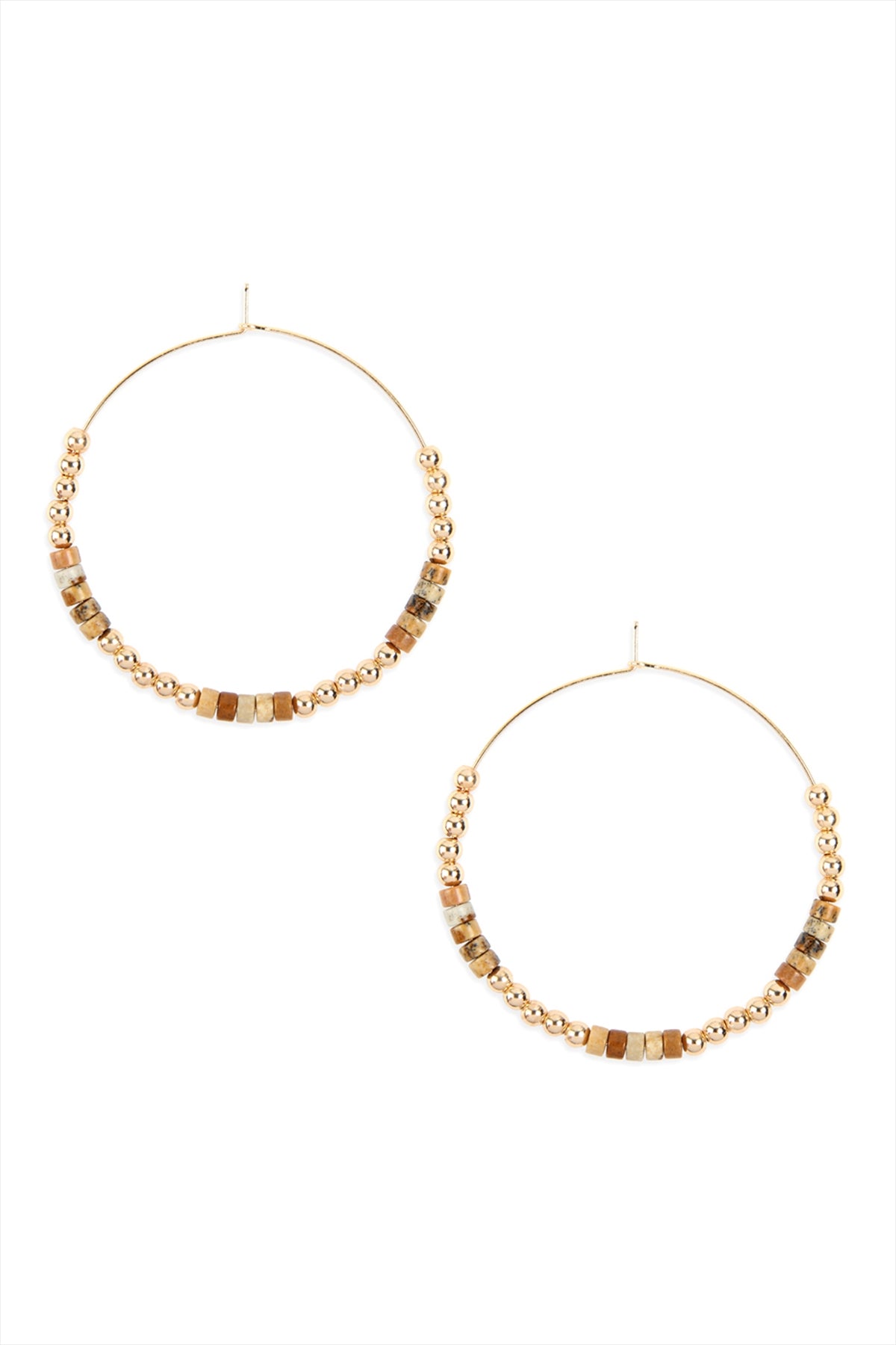 NATURAL STONE BEADS WITH METAL BEAD SPACER HOOP EARRINGS