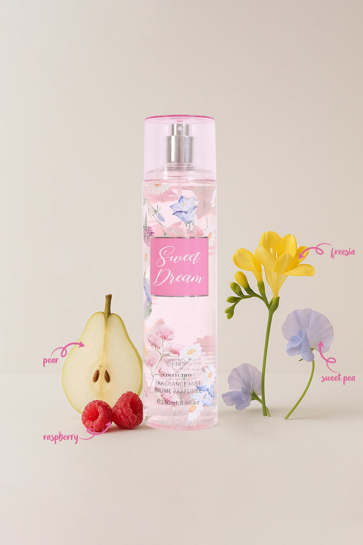 Unleash your sweetest dreams with our Sweet Dream Spray Perfume for Women. This 250ml/8.4 fl. oz. bottle is your ticket to a heavenly scent that will leave you feeling refreshed and revitalized. Experience the power of fragrance and indulge in a dreamlike state of mind. Sweet dreams, guaranteed!Â