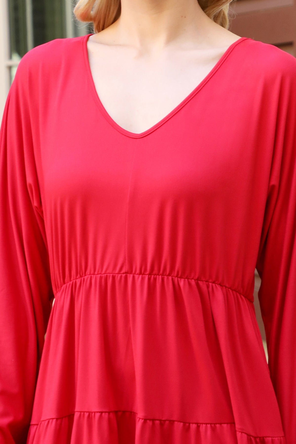 YMD10002V-SOLID LONG SLEEVE TIERED RUFFLE DRESS 1-2-2-1